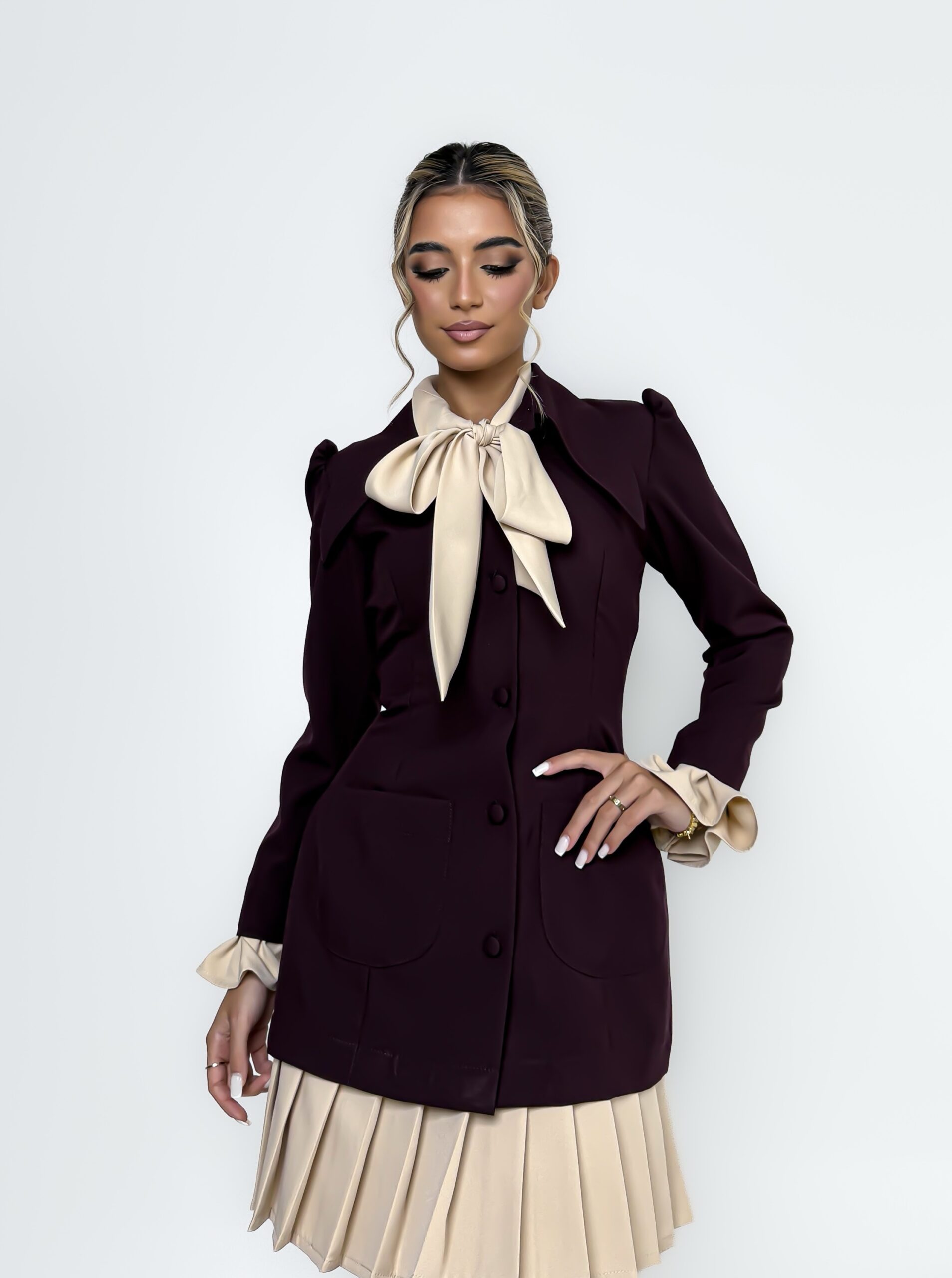 لكن قد تختلف درجة الاتساع حسب موديل التصميم (قصة مخصرة – قصة مستقيمة – قصة واسعة).